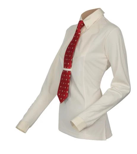 A great technical riding shirt that wicks away moisture for a comfortable yet smart presentation. Style detail: smart cotton front panel, button down collar, tie keeper, button cuffs, stretch shirt, AIR DRI moisture technology fabric, Aubrion prints.
