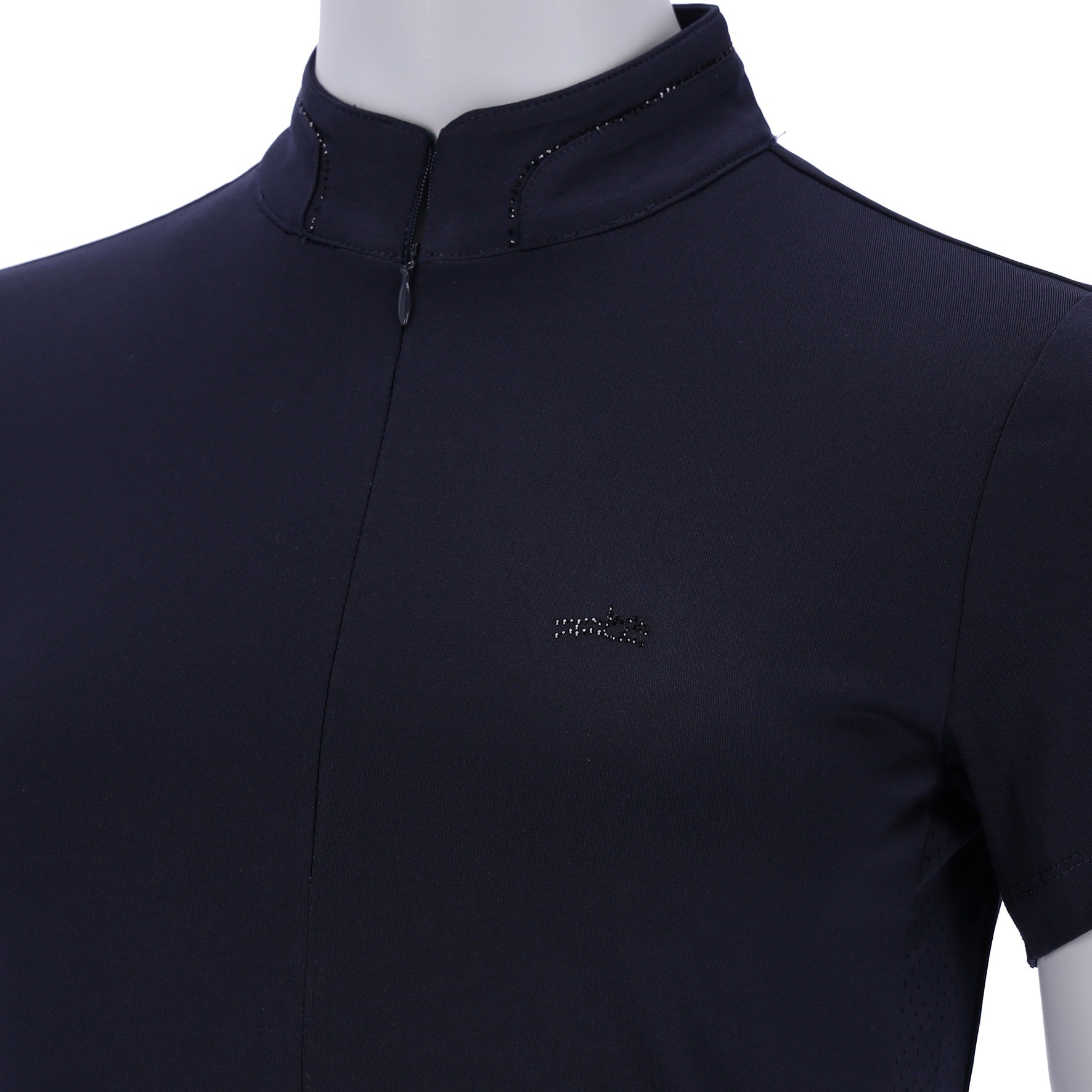 The SPPoppy Women's Training Shirt combines feminine style with functional details! This feminine training shirt features an invisible zipper at the front, providing a sleek silhouette. The perforation on the sides and the perforated logo on the upper back ensure excellent breathability. The stand-up collar is adorned with elegant rhinestone embellishments, adding a touch of sparkle to the shirt. The logo horse rhinestone motifs on the chest and sleeve create fashionable accents.