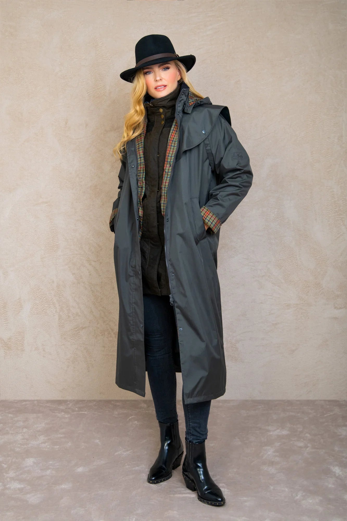 A signature of the Jack Murphy Heritage collection, the full length Malvern coat is designed to offer uncompromising wet weather functionality with over 20,000 waterproof seal, taped seams and the unique cape feature allowing rainwater to run off. Notice the internal leg straps, back vent and dual zip functionality all contributing to ease of movement whether walking the dog or on horseback.