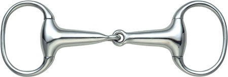 Eggbutt hollow mouth snaffle with jointed mouthpiece, made from stainless steel using the investment cast, lost wax method for the highest quality finish. Some horses often Arab or thoroughbred type, dislike a single joint as they have a low palette, in this case a french link or double jointed mouthpiece often keeps the horse relaxed in his mouth more than a single joint. The eggbutt hollow mouth jointed snaffle is thought to be one of the simplest bits, and can be good for novice horses or riders as the eggbutt cheek prevents too much vibration from the riders rein being felt by the horse. The lightweight hollow mouth means the horse carries little extra weight on the cheekpieces, and the thicker mouthpiece dissipates the pressure on the bars. The thicker mouthpiece is not ideal to use with a horse with a thicker tongue, but can be good for horses with sensitive bars.