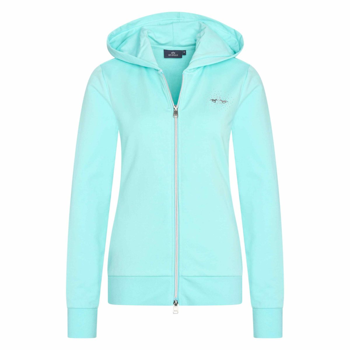 Cotton sweat terry fabric * Horse logo printed with rhinestones at chest * 2 way zipper * Rib waistband and cuffs * 2 Insert pockets in side seam * A wide array of colors