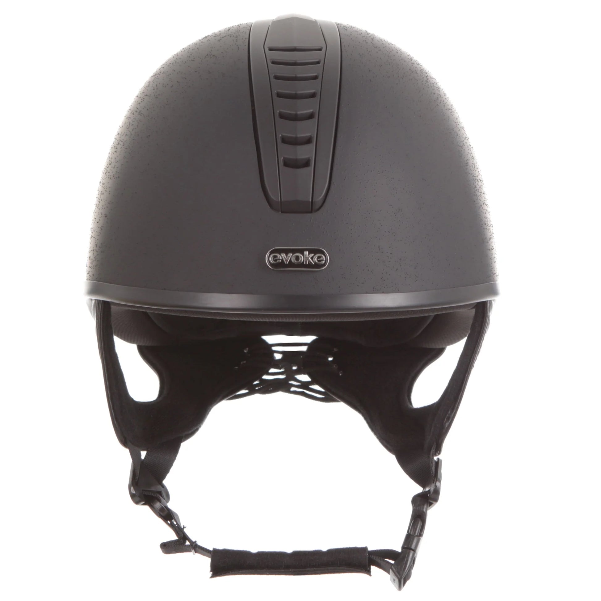 Introducing the stellar Orion Jockey Skull. Boasting a striking black & gunmetal vent and sanded black finish. A chrome ‘evoke’ branded logo at the forehead completes the look.- Conforms to PAS 015: 2011 Standard; VG1; EN 1384 2023