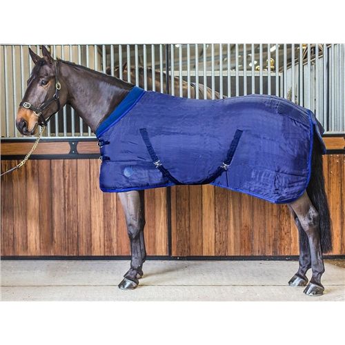 It has been thoughtfully designed with a polypropylene outer shell and 100g filling, offering essential protection and warmth. The standard neck design, leg gussets, tail flap, detachable leg straps, and cross surcingles with rubber rings ensure a secure and comfortable fit, enabling your horses freedom of movement around their stable.