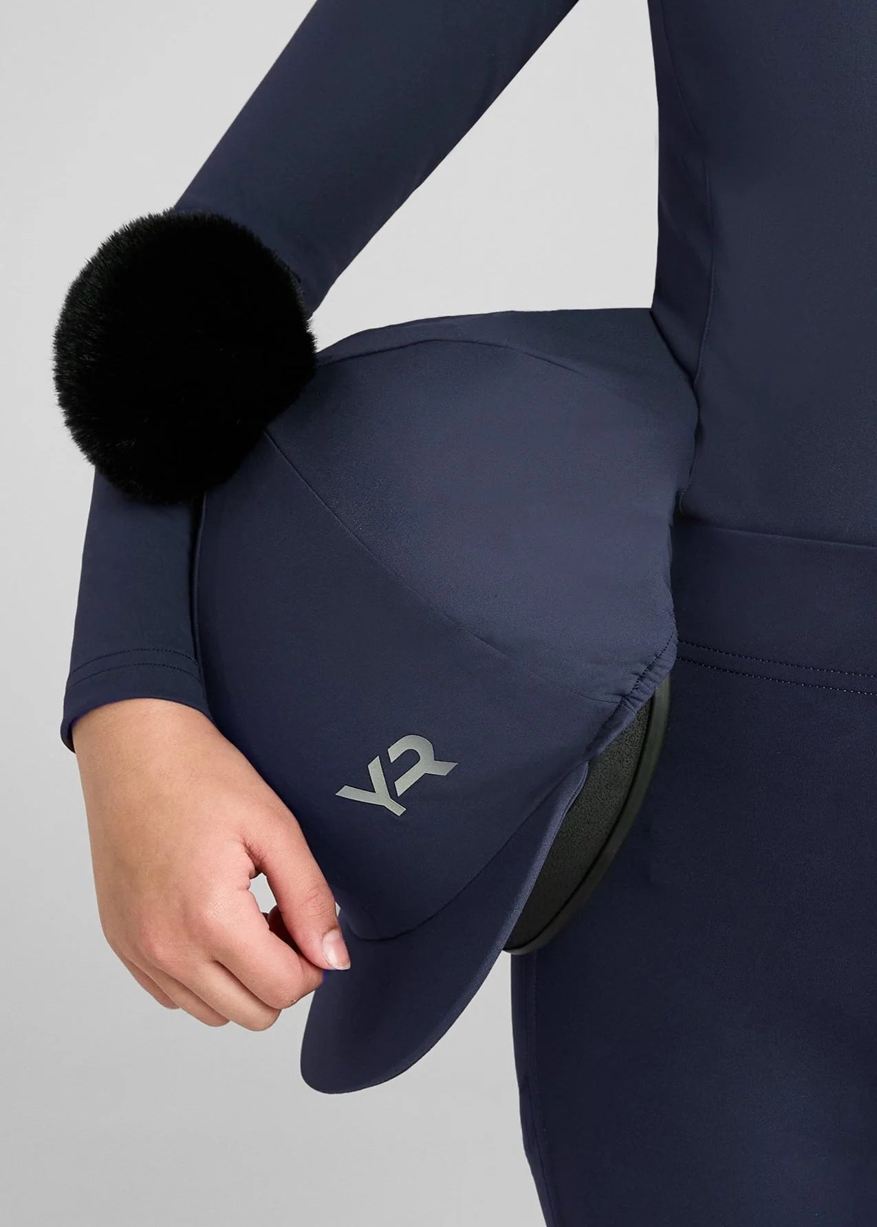 Stretch lycra hat silk to go on top of a skull cap. Finished with super soft faux pom pom and AD branding. Re-enforced peak, internal silicone grip so silk doesn't move.