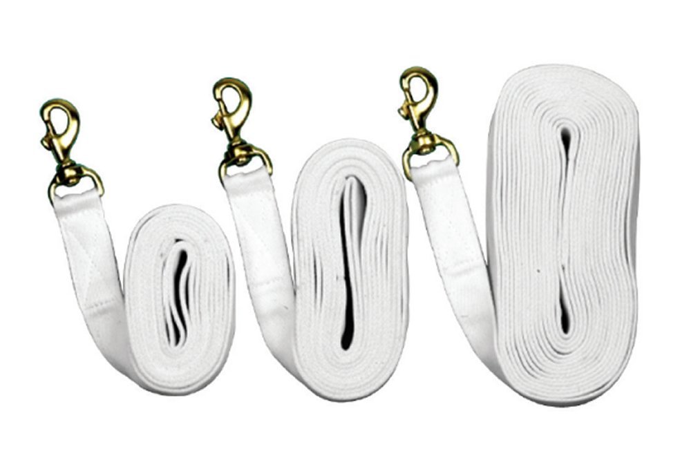 Made using 1 1/4" white cotton webbing (loop handle) with strong solid brass swivel trigger hook.