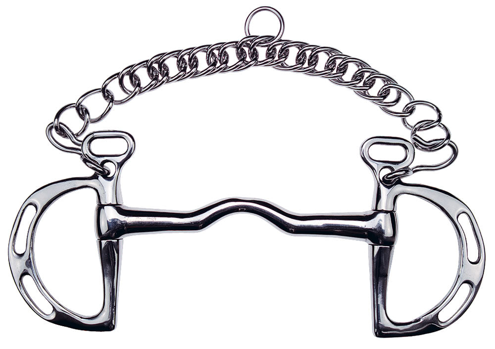Stainless steel. Low port thin mouthpiece and slotted cheeks.