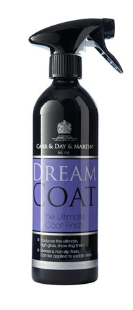 Outshine the competition with Dreamcoat, the ultimate high gloss finish. The unique non-slip formula highlights muscle definition and can be used on the saddle patch, leaving no grease or residue. Spray Dreamcoat onto manes and tails prior to plaiting for a high shine finish.