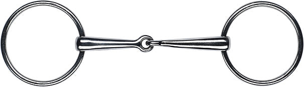 In stainless steel, full and fine barrels, large rings with channelling effect. Can be used alone or on a bridle, for horses with little sensitivity.