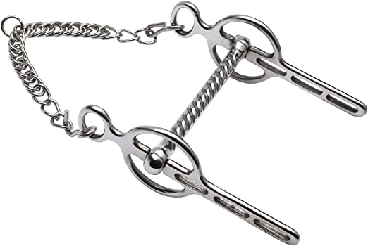 The liverpool bits cheeks have 4 different levels of control. The larger ring is the least severe, with the bottom loop or slot is the most severe or most control.