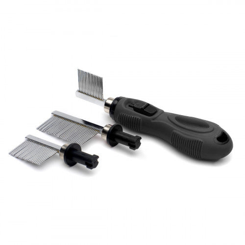 The brand new quarter marking comb from Supreme Products comprises of one ergonomically designed handle and 3 interchangeable quarter marking comb heads which can be locked in to place in the handle, enabling you to produce immaculate quarter marks. The comb heads measure 25mm, 35mm and 50mm and should cover most quarter marking requirements. Other sized heads will soon be available as an optional extra.