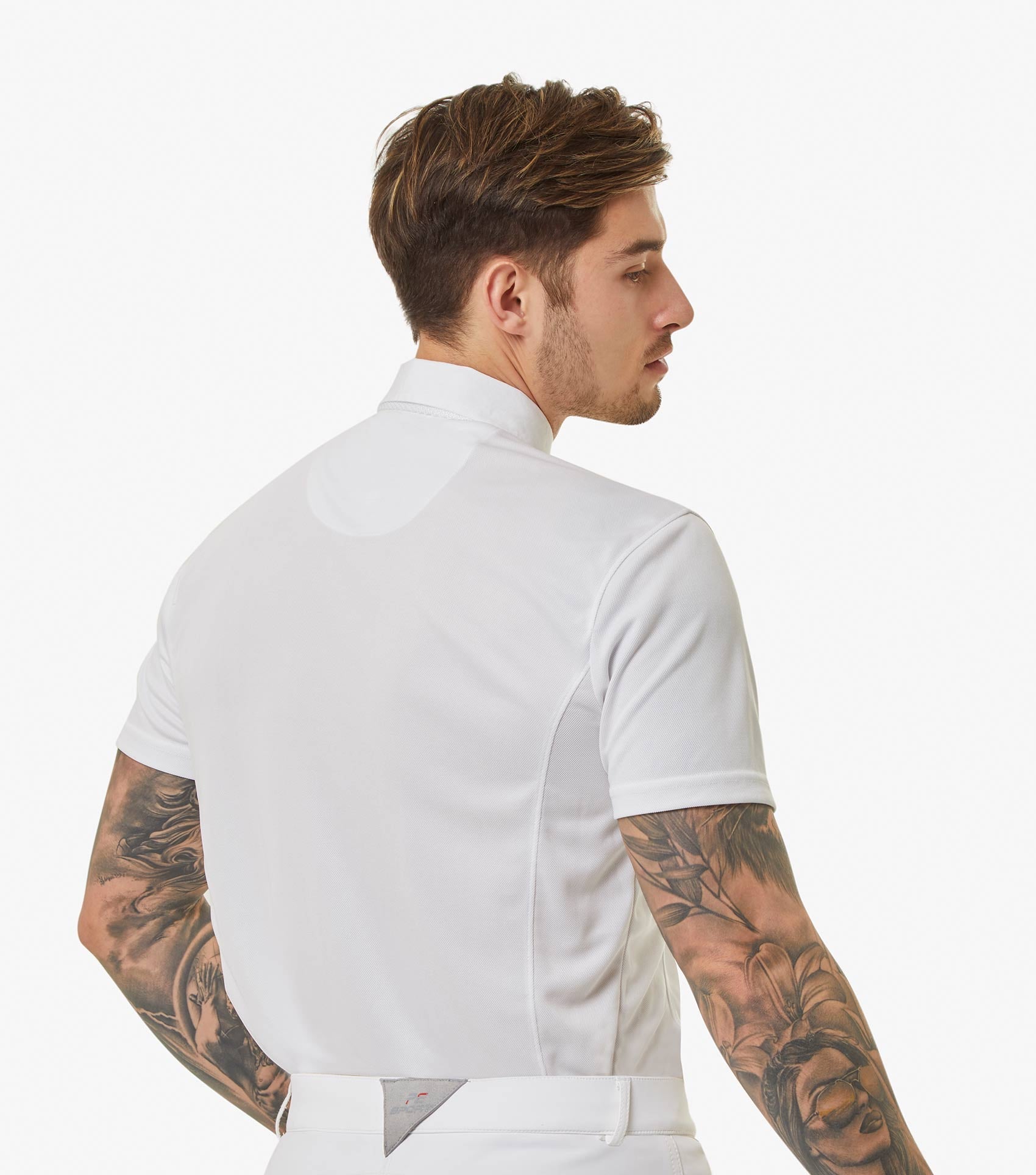 Antonio Men's Short Sleeve Show Shirt in White is designed for equestrian competitions and offers several technical features to enhance comfort and performance. Here are the key technical details of this show shirt: