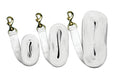 Made using 1 1/4" white cotton webbing (loop handle) with strong solid brass swivel trigger hook.