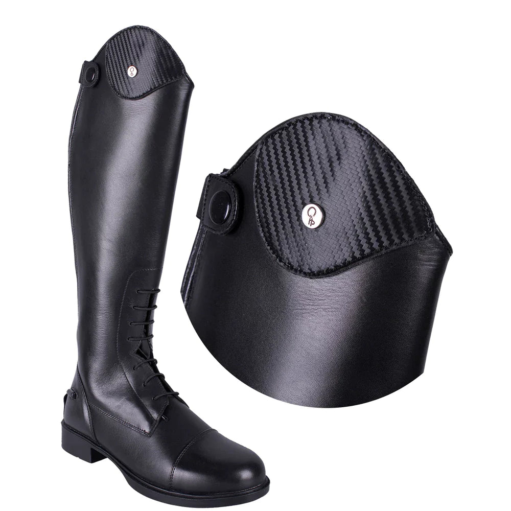Exchangeable top for the riding boot Romy. The top features a carbonfiber look.