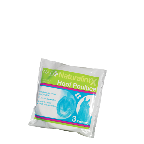 CAUTION: Clean the area thoroughly before the application of NaturalintX Hoof Poultice. Clean hands thoroughly before and after application. Do not apply the NaturalintX Wrap or bandage too tightly, as circulation can be severely restricted. NAF NaturalintX Veterinary approved Hoof Poultice should be renewed at least every 12 hours and should not be used in conjunction with any medical preparations unless advised otherwise by a veterinary surgeon. WARNING Prior to applying the hoof poultice to your horse, ensure that the temperature is suitable on your own skin. Both extremes of hot and cold can be dangerous to your horse.