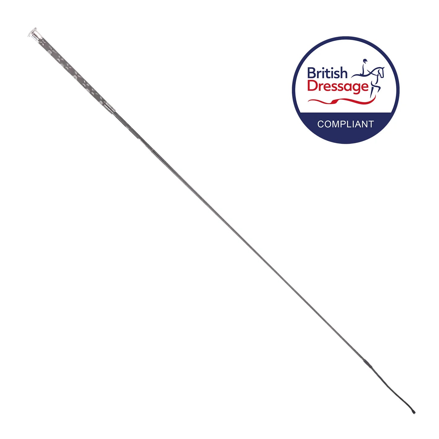Practical and sleek whip suitable for both competitions and everyday riding. This whip features a braided design with braided lash detail. The 'X' pattern rubber handle with silver cap and collar detail offers easy grip for the rider with a stylish finish. Available in two lengths