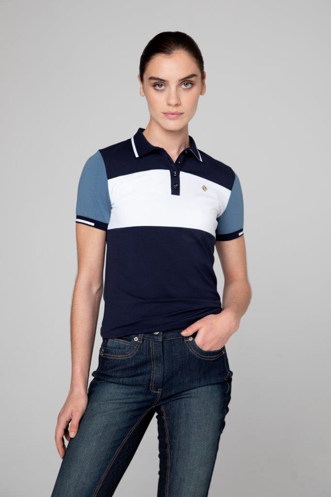 Tesoro Vita Pelosa Polo Shirt – a versatile blend of sporty chic that effortlessly complements any wardrobe, whether you choose to pair it with jeans or breeches. This timeless polo silhouette has received a contemporary makeover with the addition of the Tesoro 3D logo, infusing it with modern flair. Crafted from a high-quality blend of cotton and spandex, it not only offers a flattering fit but also ensures maximum comfort and flexibility. Whether you're layering up for added warmth or seeking a dependable wardrobe staple, the 'Pelosa' Polo Shirt from Tesoro Vita is your ideal choice. Available in Navy/White, it's the epitome of style, practicality, and comfort for both your everyday and equestrian wear. Elevate your wardrobe with the signature 'Pelosa' Polo Shirt from Tesoro Vita.