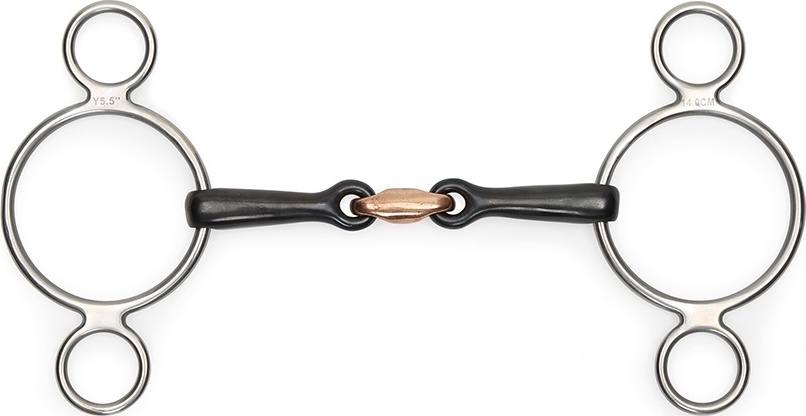 Moving the rein between the main ring and bottom ring allows leverage. Sweet iron and copper encourages the horse to be softer in the mouth. The 5 and smaller sizes of this bit have smaller rings to ensure the two ring gag bit remains in proportion. Mouthpiece thickness: 16mm. Cheek height: 115mm (4.5, 5), 145mm (5.5, 6). Sweet iron mouthpieces are designed to oxidize to produce a sweet taste which helps with mouthing. The addition of copper to the mouth ensures the horse will not take up too much of a contact, ideal for horses that can take a hold. Stainless steel is used for the cheeks due to it being durable, easy to clean and resistance to rust.