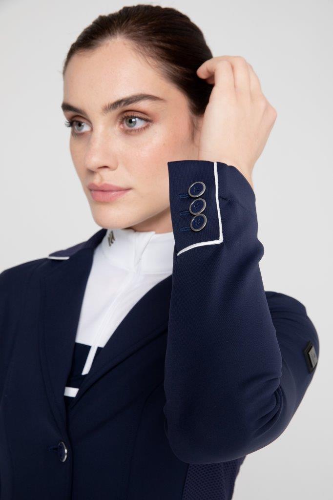 The Tesoro Vita Competition Jacket – an exceptional fusion of style, comfort, and performance designed exclusively for equestrians. Crafted with precision, this jacket boasts strategically placed mesh inserts and perforations, enhancing breathability and flexibility while maintaining durability. Its tailored waistline not only exudes elegance but also ensures a flattering fit. The unique concealed zip fastening adds a touch of sophistication, setting it apart from the rest. Whether you choose the classic Black or the timeless Navy, the Tesoro Vita Competition Jacket will elevate your riding experience, delivering unmatched comfort and style in the saddle. Discover the pinnacle of equestrian fashion and functionality with Tesoro Vita.