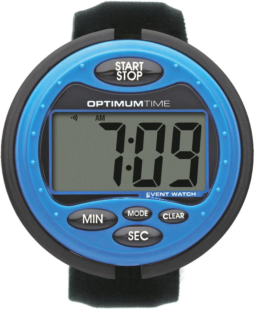 The Ultimate Event Watch is waterproof with a Jumbo display. Composed of a watch, a stopwatch, (from 0), a minute-counter with alarm and a programmable countdown with alarm. Beeps every minute.