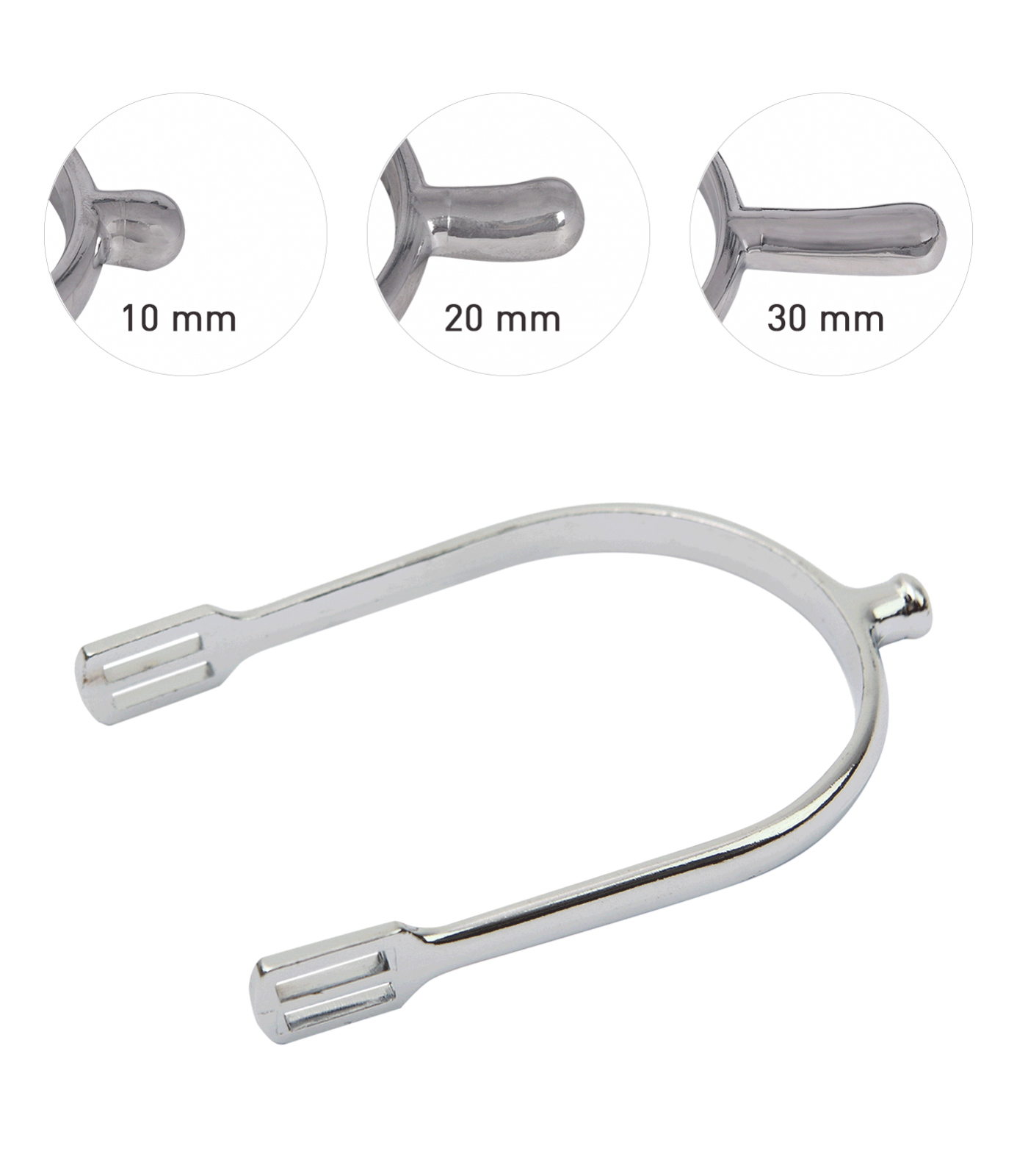 Spurs with fixed spur protector and nylon spur straps.The fixed spur protector prevents the spur from slipping and protects the boots from damage, pair.