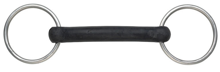 This bit is made from hard rubber so it is not flexible but is still kind due to the thick mouthpiece. Mouthpiece thickness: 21mm. Cheek height: 65mm. Rubber covered mouthpieces are generally thicker, making them softer and particularly suited to sensitive mouths. Available as mild, flexible rubber or treated with heat to produce a harder rubber which has a slightly stronger action. It is important that the horse salivates effectively using rubber mouthpiece bits. Stainless steel is used due to it being durable, easy to clean and resistance to rust.