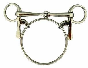 The Dexter ring bit is widely used in racing, and is useful for strong horses. The ring on the Dexter bit is also useful for safely leading a high spirited horse whilst tacked up. The bit is a jointed mouthpiece giving a nutcracker cation, but is limited in action as it is attached to the ring in 3 places. The half spoon bottom to the cheek of the Dexter ring bit, helps to improve steering and prevent the bit from being dragged through the horse’s mouth.